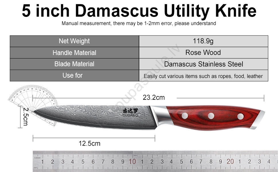 • Asmeni veido 67 slāņi damašākā tērauda ar cietu VG10 kodolu, kas nodrošina ārkārtēju asumu un ilgstošu asmens stabilitāti.