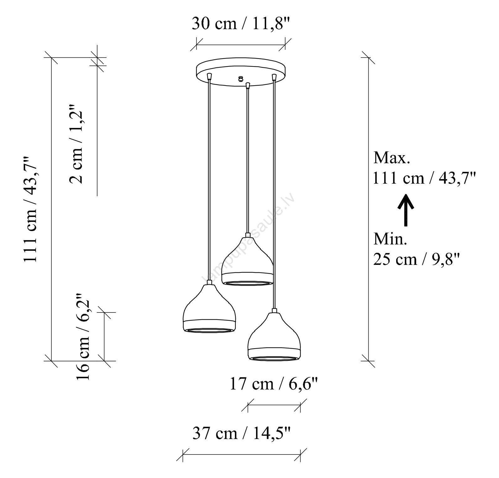 • Pakaramais gaismeklis uz troses YILDO 3xE27/40W/230V, balts/zelts