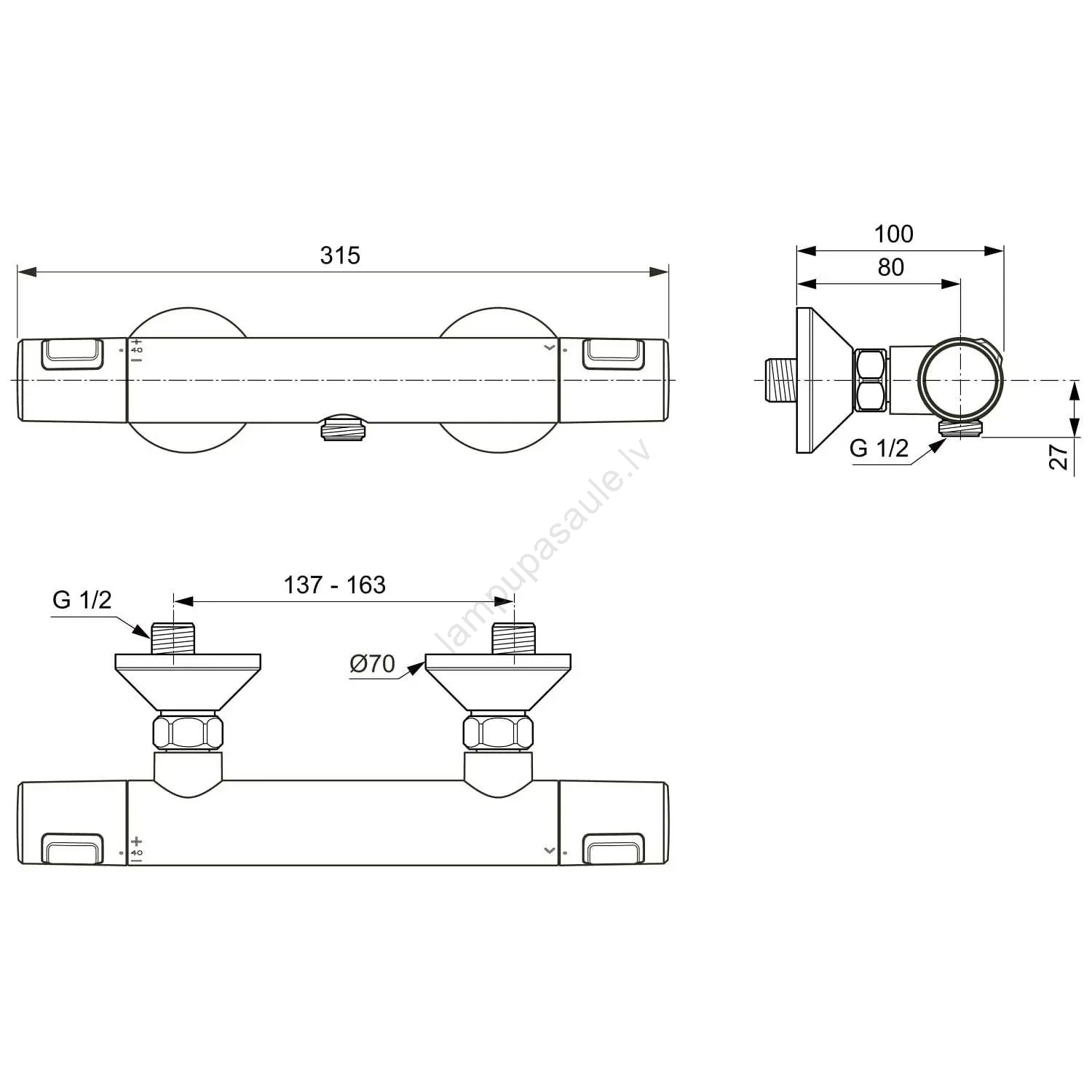 • Termostata dušas jaucējkrāns Ideal Standard CeraTherm ir paredzēts sienas montāžai un darbojas ar T25 tehnoloģiju.