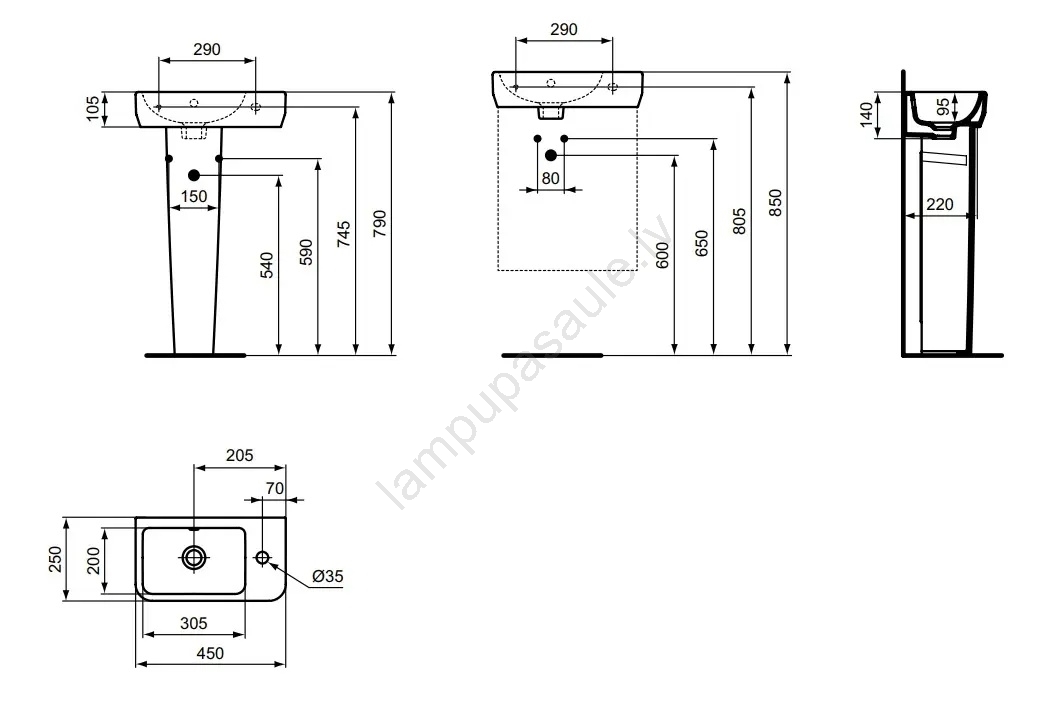 • Izlietnei ir viena krāna montāžas atvere, kas izvietota labajā pusē.