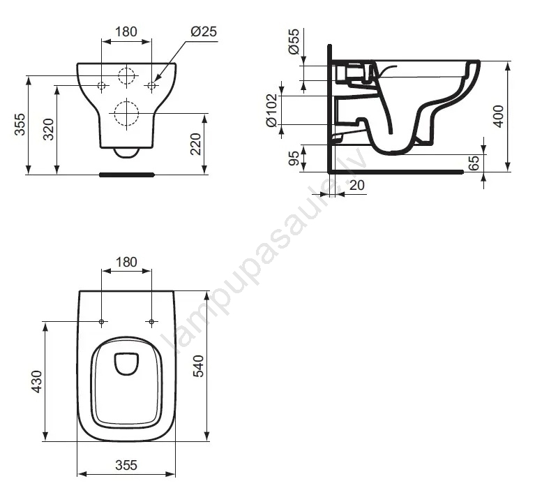 • Tualetes sēdeklis un skalošanas tvertne nav iekļauti komplektā.