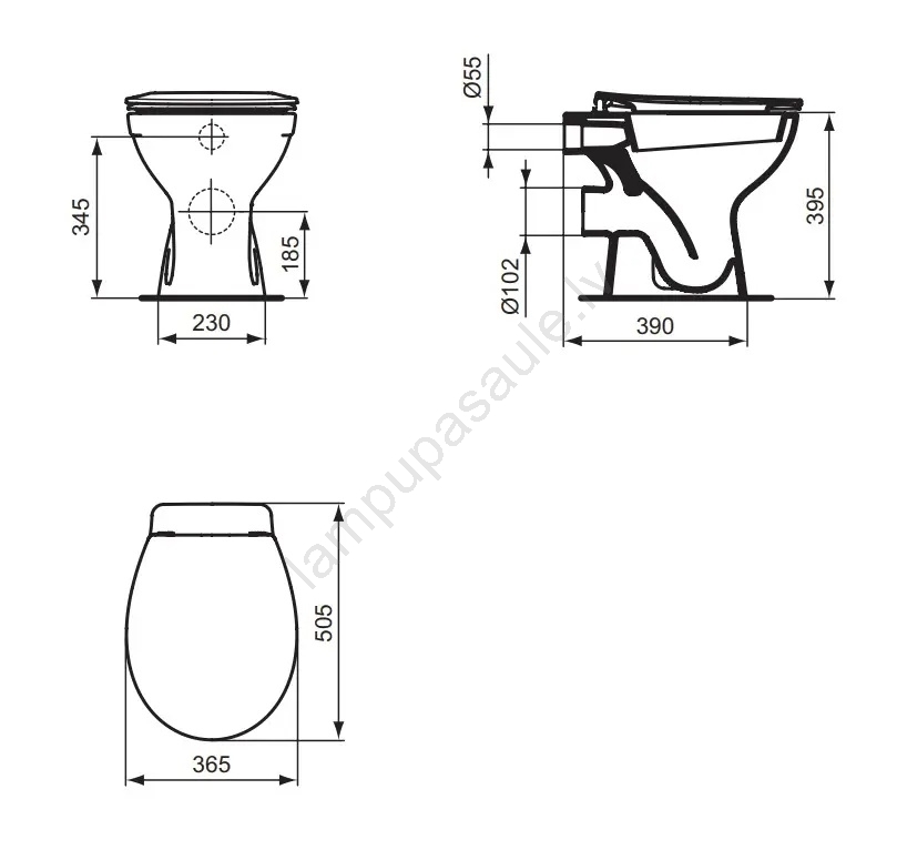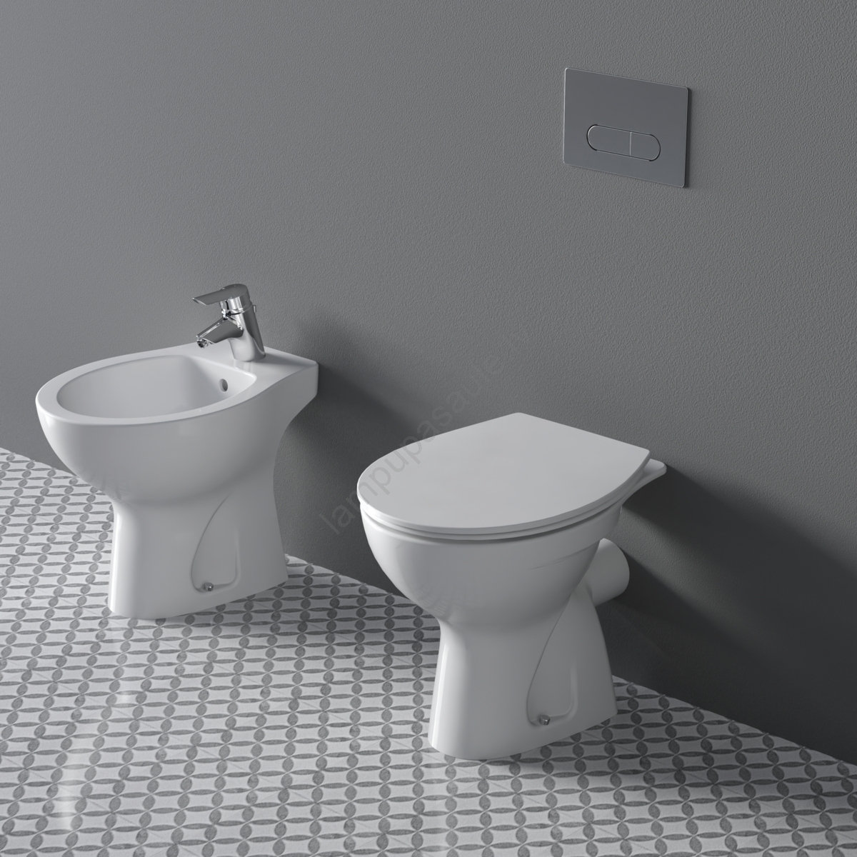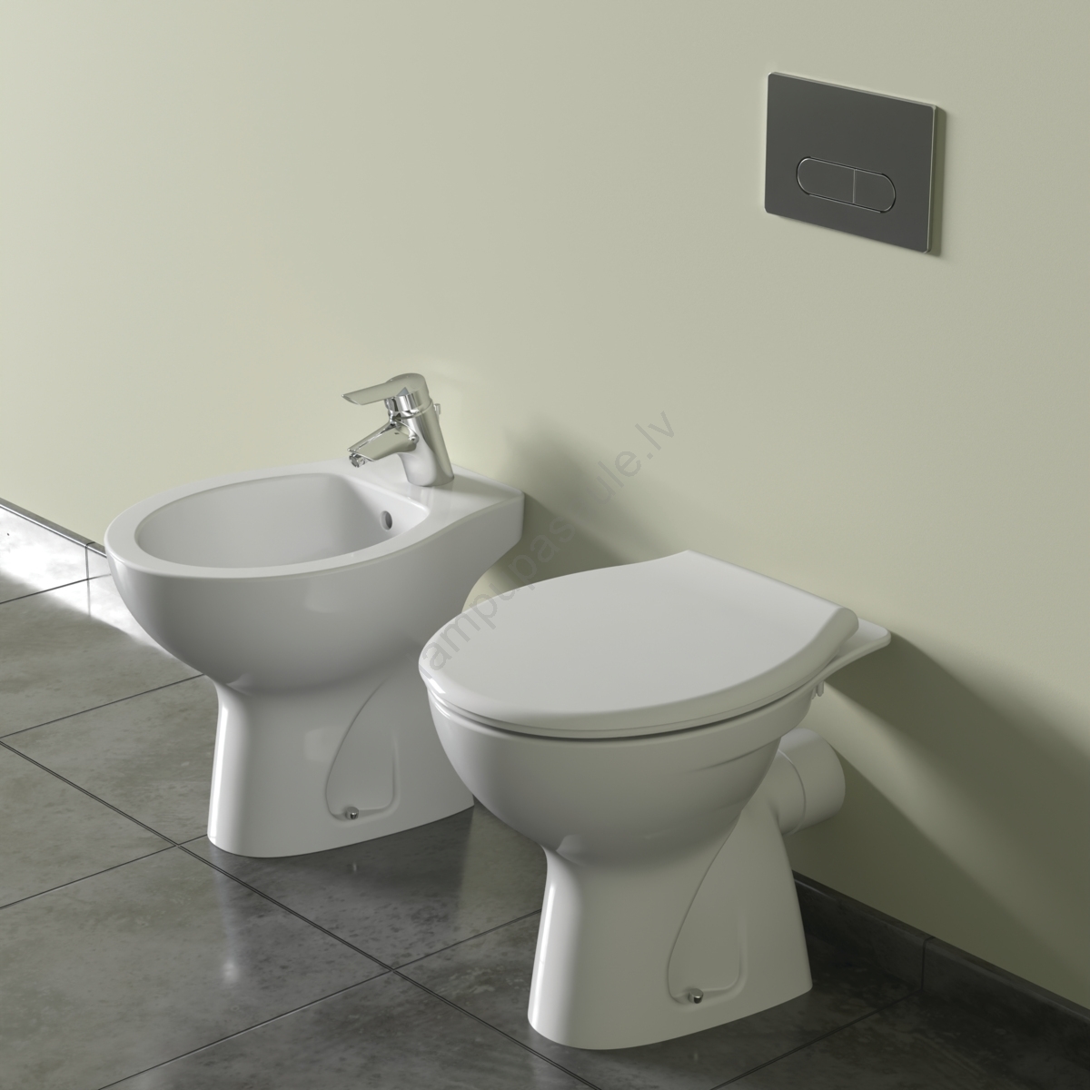• WC sēdeklis, skalošanas tvertne un stiprinājuma materiāli nav iekļauti komplektā.
