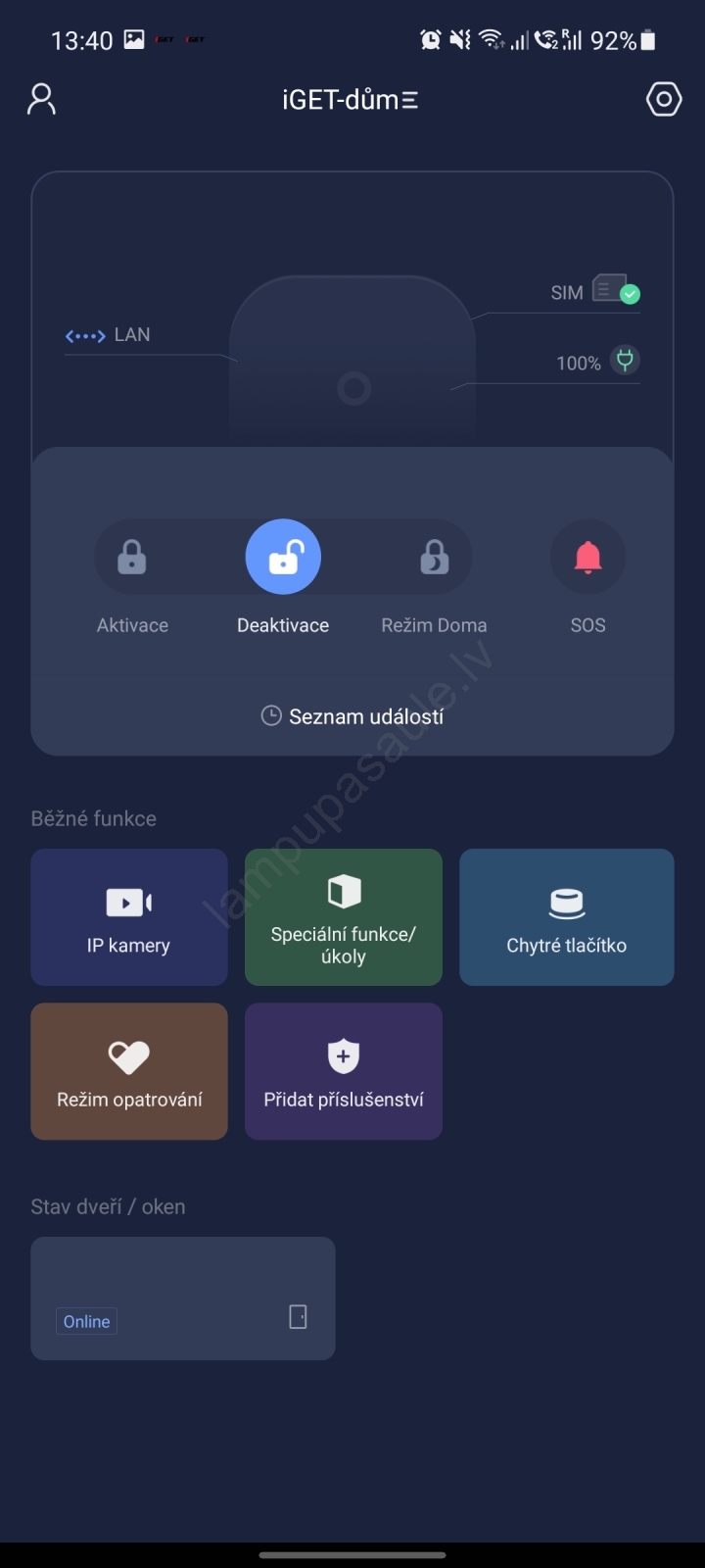 • Funkcija Gatavs aktivēšanai – pārbauda aizvērtus logus un durvis, aktivējot signalizāciju; brīdina par tām, kas palikušas atvērtas.