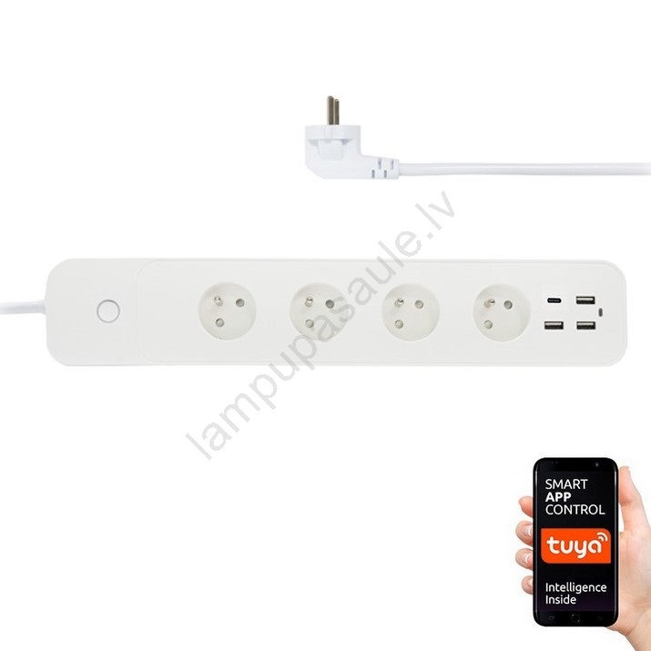 Immax NEO 07771L- Pagarinājuma kabelis NEO LITE Smart 4AC+3xUSB+1xUSB C Wi-Fi Tuya | Lampupasaule
