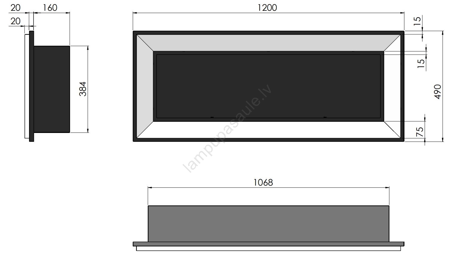 • Kamīna izmēri: 49 x 120 x 20 cm
