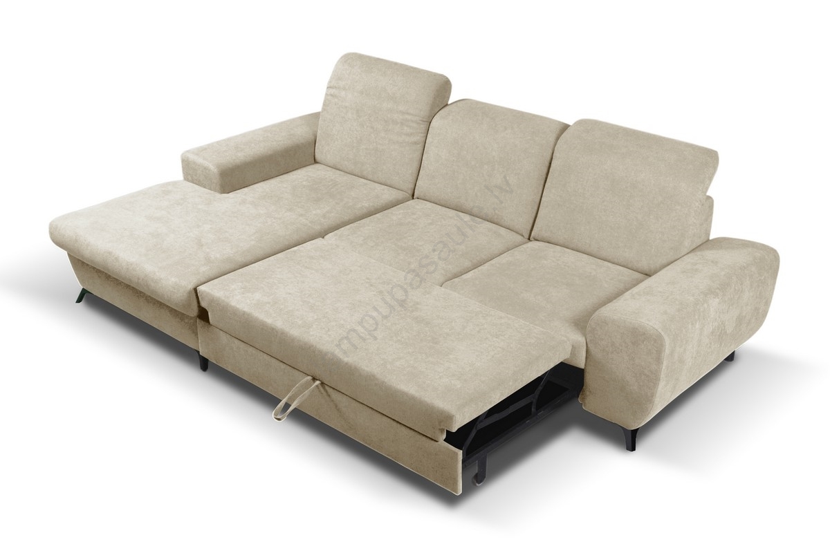 Izvelkams L formas tapisēts stūra dīvāns ALTA ar uzglabāšanas nodalījumu, kreisais, bēšs | Lampupasa