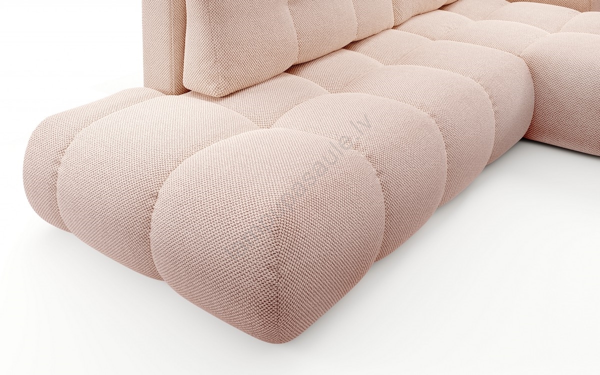 • ALMADA L veida izklājams polsterēts stūra dīvāns ar uzglabāšanas nodalījumu, kreisais, rozā