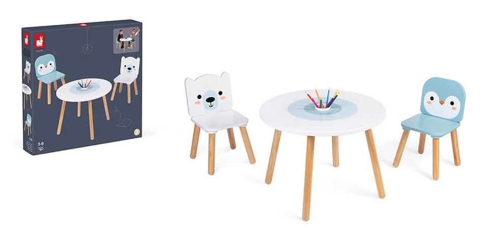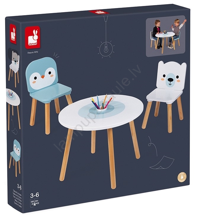 • Šis krāsainais galds un 2 krēslu komplekts ar polāro dzīvnieku motīvu ir ideāls papildinājums bērnistabai.