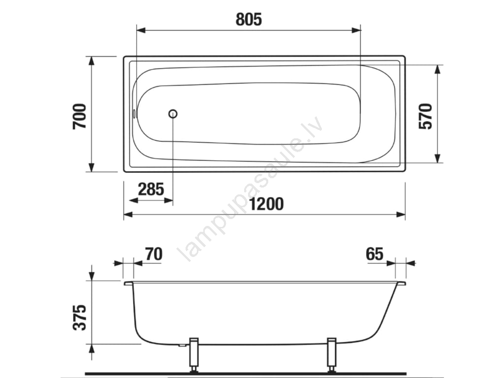 • Klasiska taisnstūra forma ar izmēriem: 1200 × 700 × 375 mm.