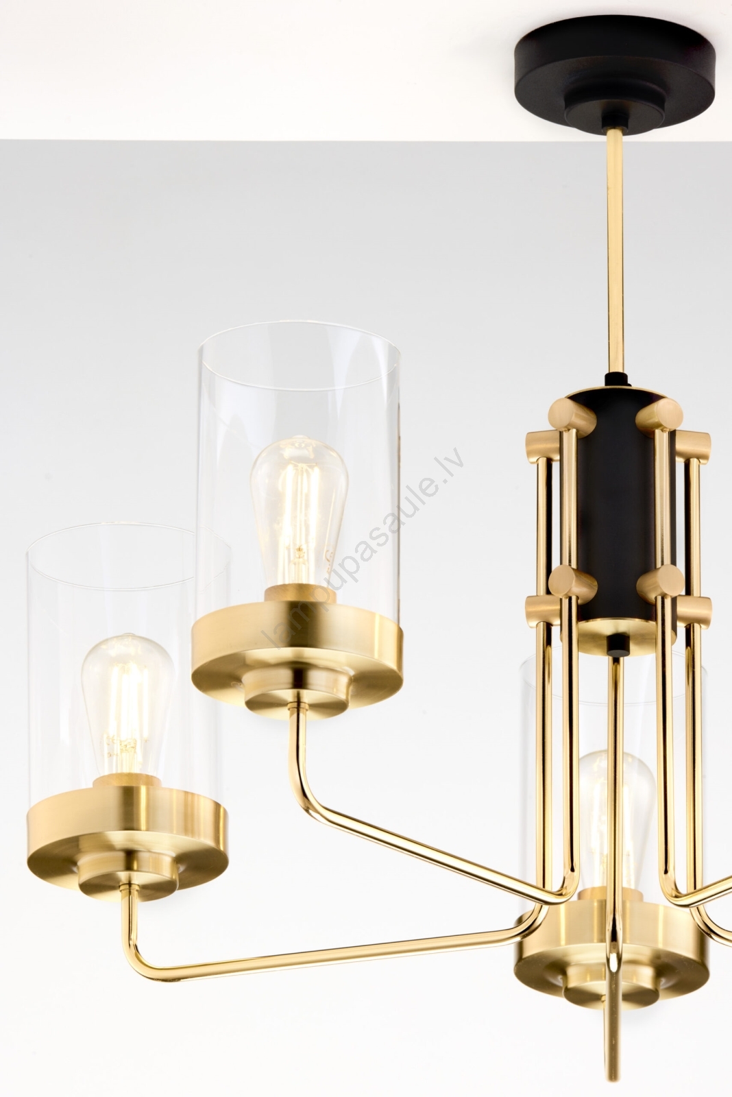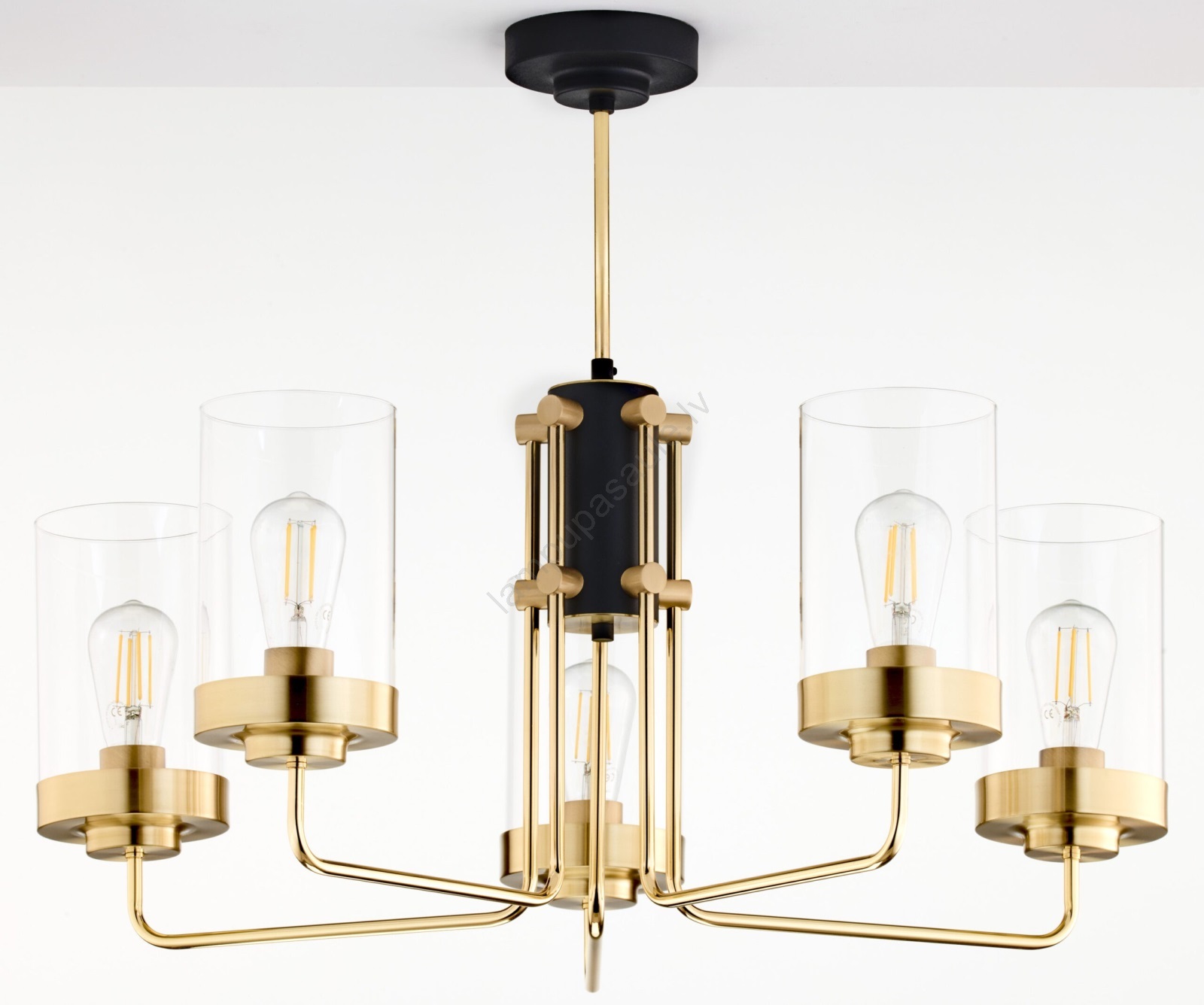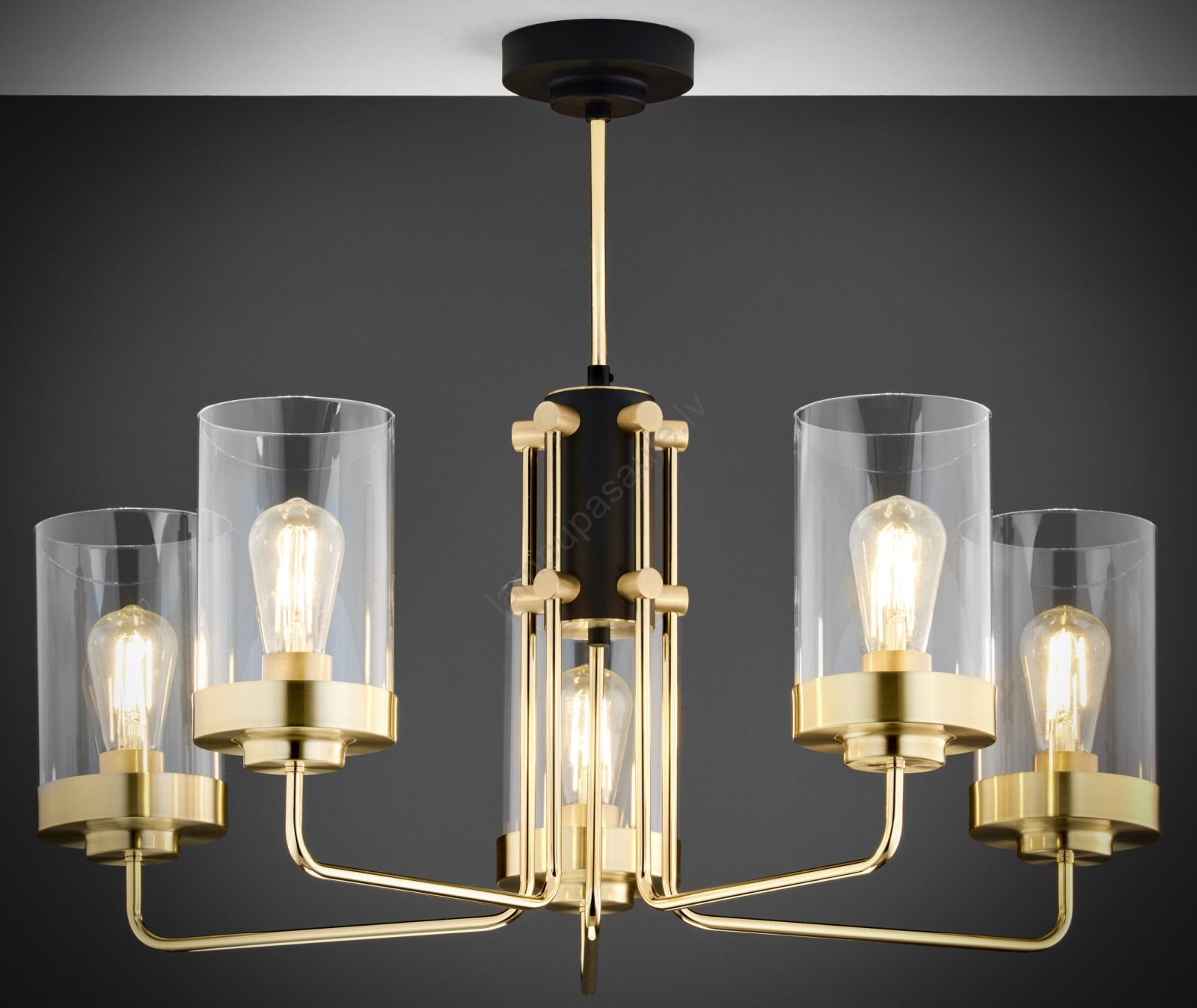 Jupiter 2088 - Griestu lustrs ar stieni RAMIREZ 5xE27/15W/230V zelta/melna izceļas ar jauku un funkcionālu dizainu.  Spuldze ar E27 cokolu irpiemērota lampai. Šeit, varat iegādāties citas spuldzes par izdevīgām cenām. Tā būs interesants jūsu mājas papildinājums.