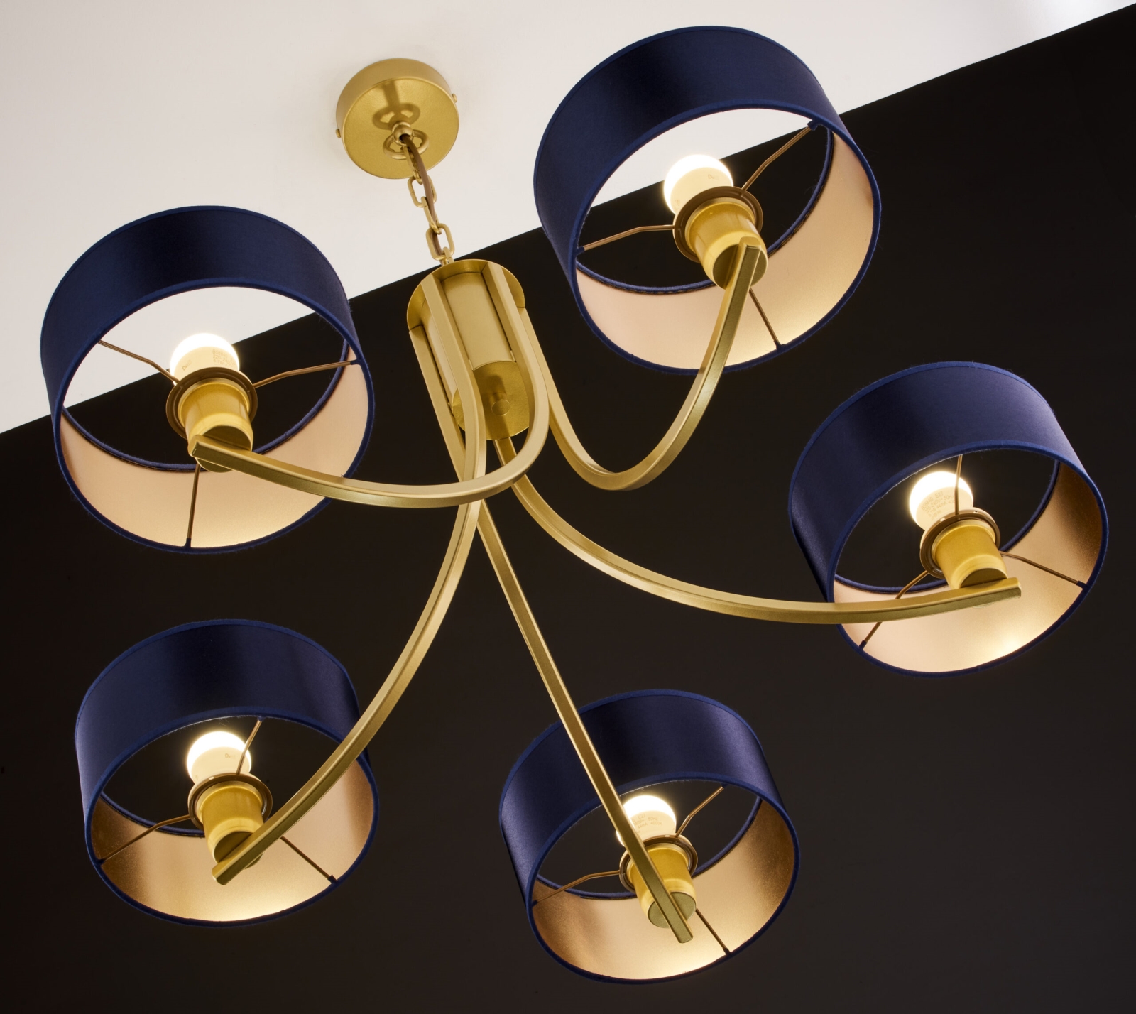 Jupiter 2094 - Lustra ar ķēdi ARTHUR 5xE27/15W/230V zila/zelta izceļas ar jauku un funkcionālu dizainu.  Spuldze ar E27 cokolu irpiemērota lampai. Šeit, varat iegādāties citas spuldzes par izdevīgām cenām. Tā būs interesants jūsu mājas papildinājums.