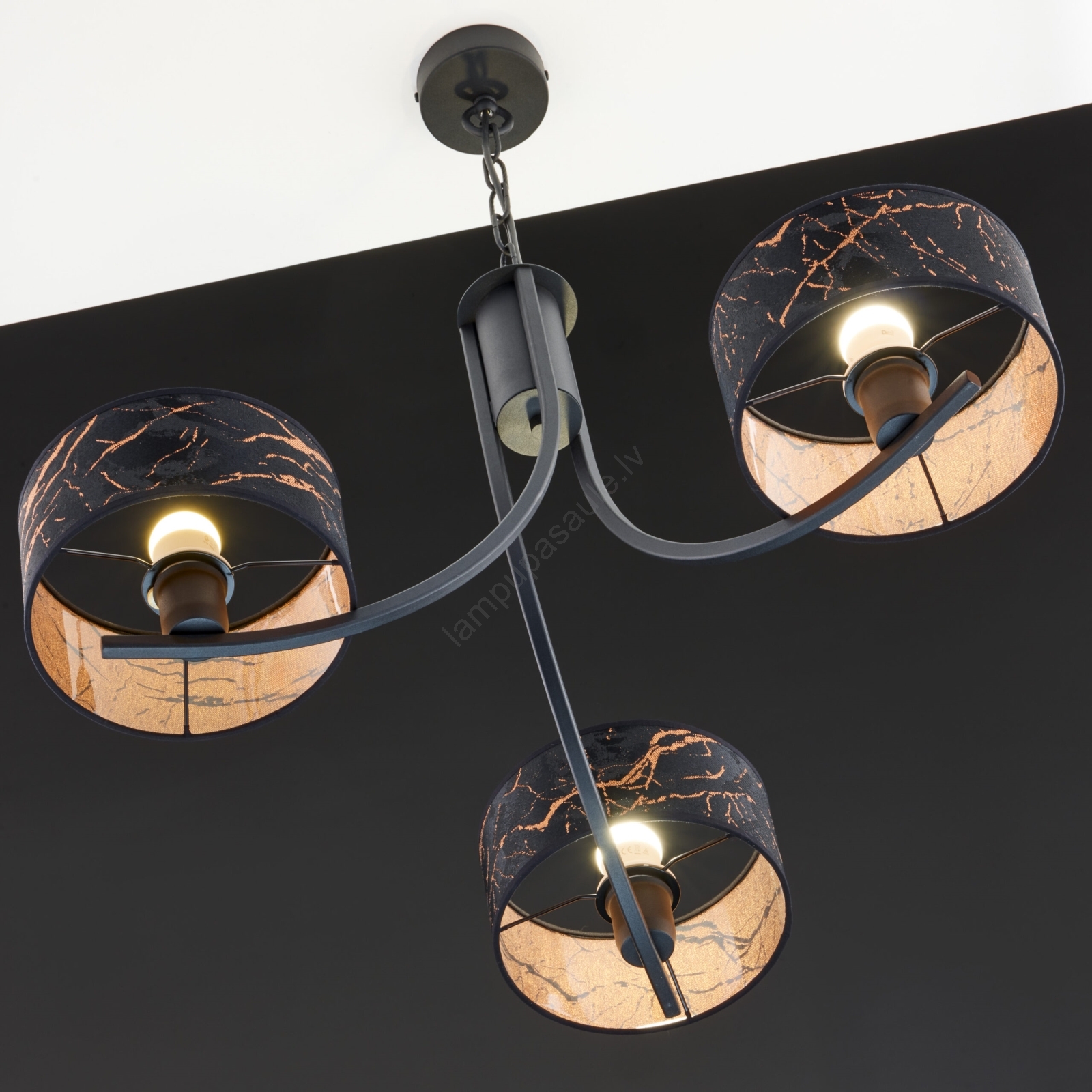 Jupiter 2106- Lustra uz ķēdes ARTHUR 3xE27/15W/230V melna/oranža/marmora dekors | Lampupasaule
