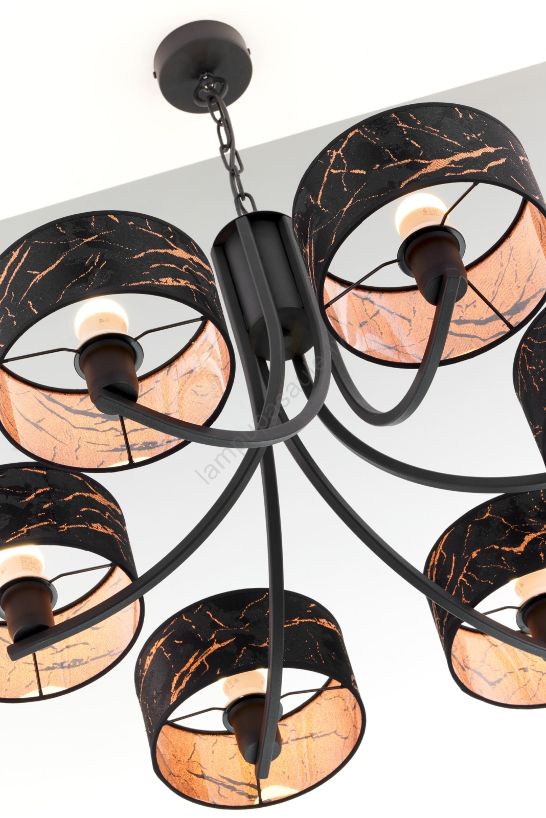 Jupiter 2108 - lustra uz ķēdes ARTHUR, 6xE27/15W/230V, melna/oranžā ar marmora dekoru | Lampupasaule
