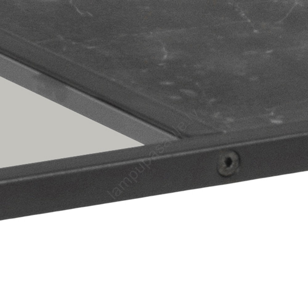 • Augšējā virsma: matēti melna Izmir rupjā melamīna apdare un dūmakains rūdīts stikls, pamatne: matēta melna rupji pulverkrāsota tērauda konstrukcija ar atvērtu nodalījumu.
