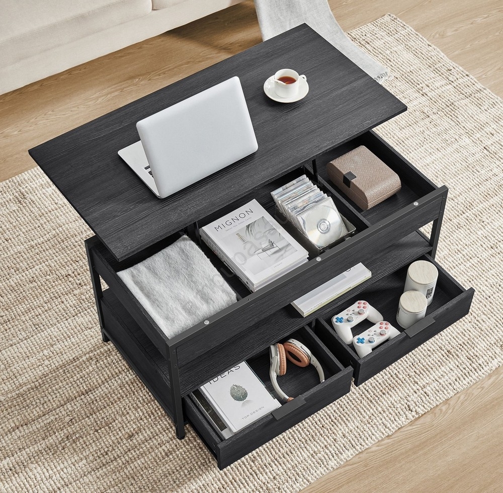 • Žurnālu galdiņš ar paceļamu virsmu NYRO, melns