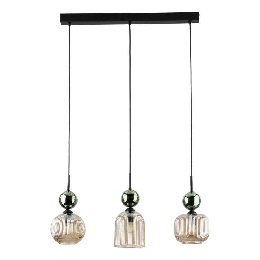 Karājamā lampa SOPHIA uz vada 3xE14/10W/230V melna/zaļa/dūmota bēša | Lampupasaule