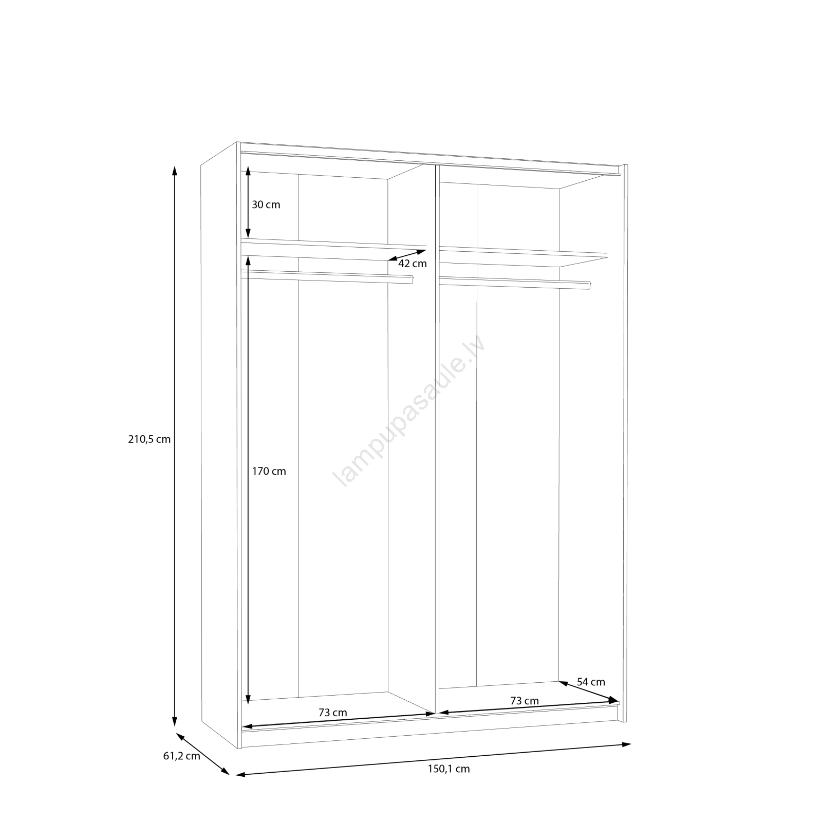 • Skapis aprīkots ar drēbju stieņiem, plauktiem un plašu uzglabāšanas vietu jūsu apģērbam, somām un sezonālajām lietām.