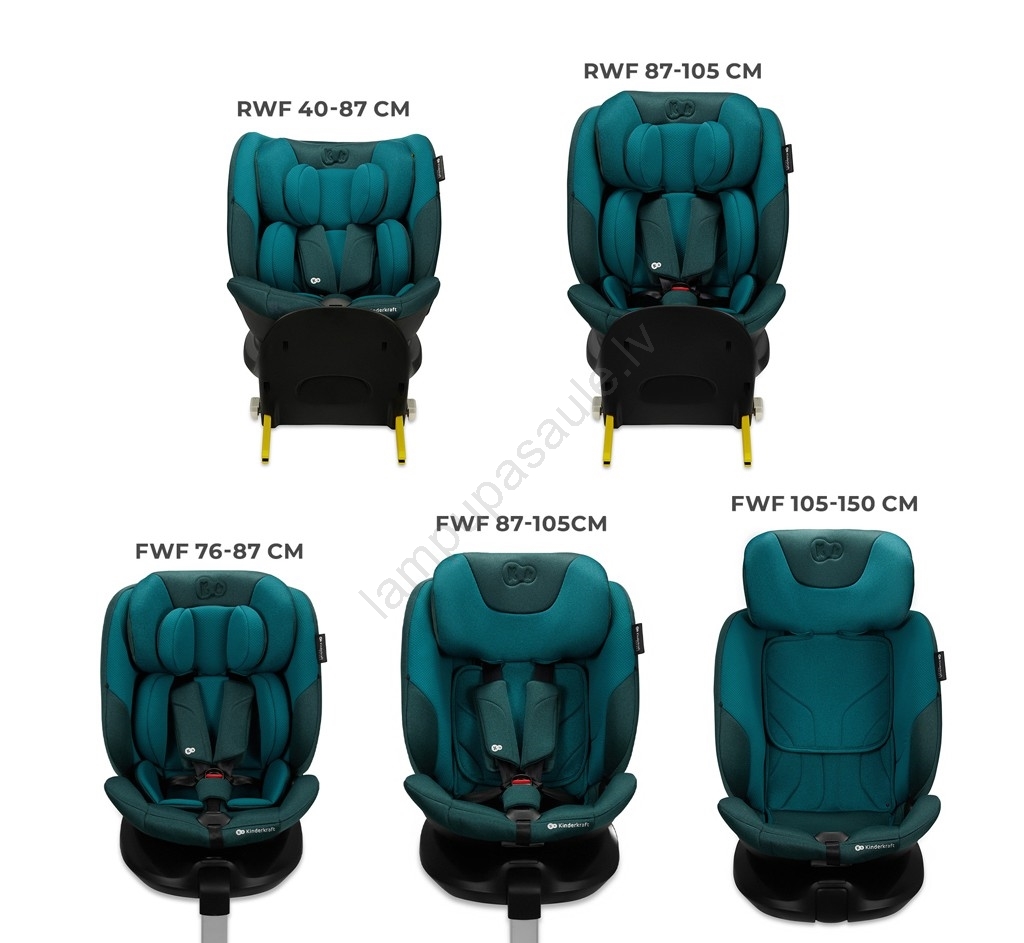 • Lielākiem bērniem no 100 līdz 150 cm sēdekli var piestiprināt pie ISOFIX un automašīnas drošības jostas, vai arī tikai ar drošības jostu.