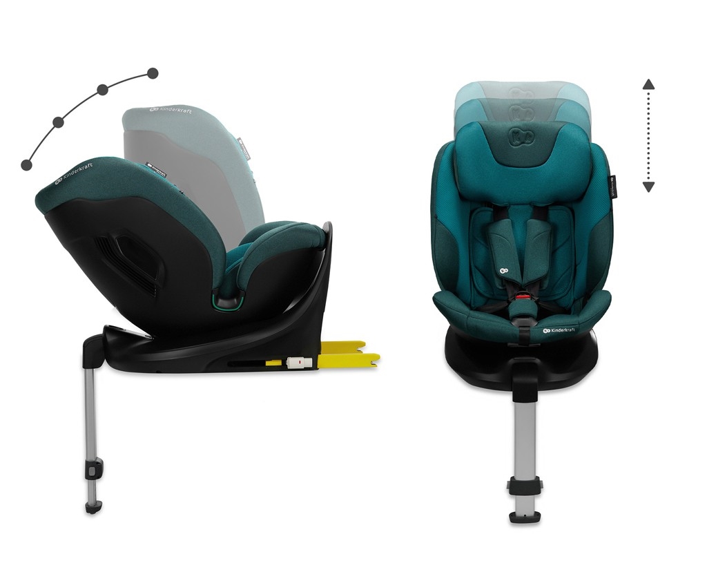 • RECLINING funkcija piedāvā astoņas nolieces pozīcijas — četras braukšanai pretējā virzienā un četras pa braukšanas virzienu, nodrošinot ērtu sēdēšanu un miegu.