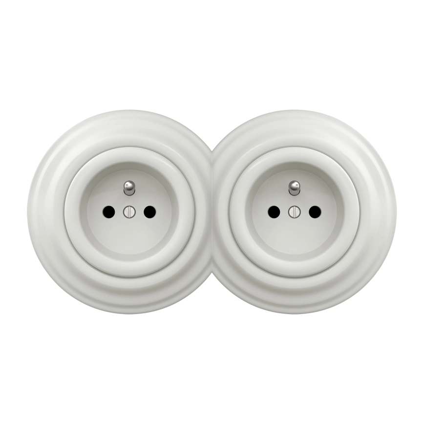 • Kliklap - Dubultā retro sadzīves kontaktligzda ar rāmi 230V balta