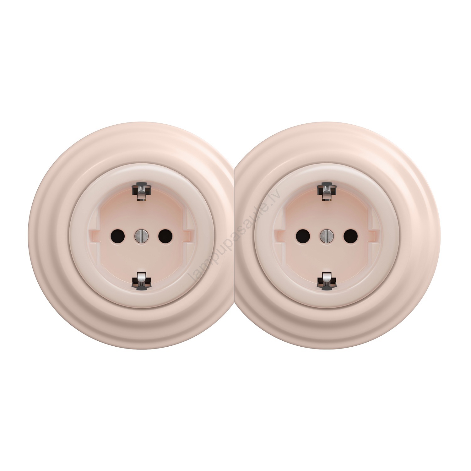 • Kliklap - Dubulta retro sienas rozete ar rāmīti SCHUKO 230V/16A antīkā rozā
