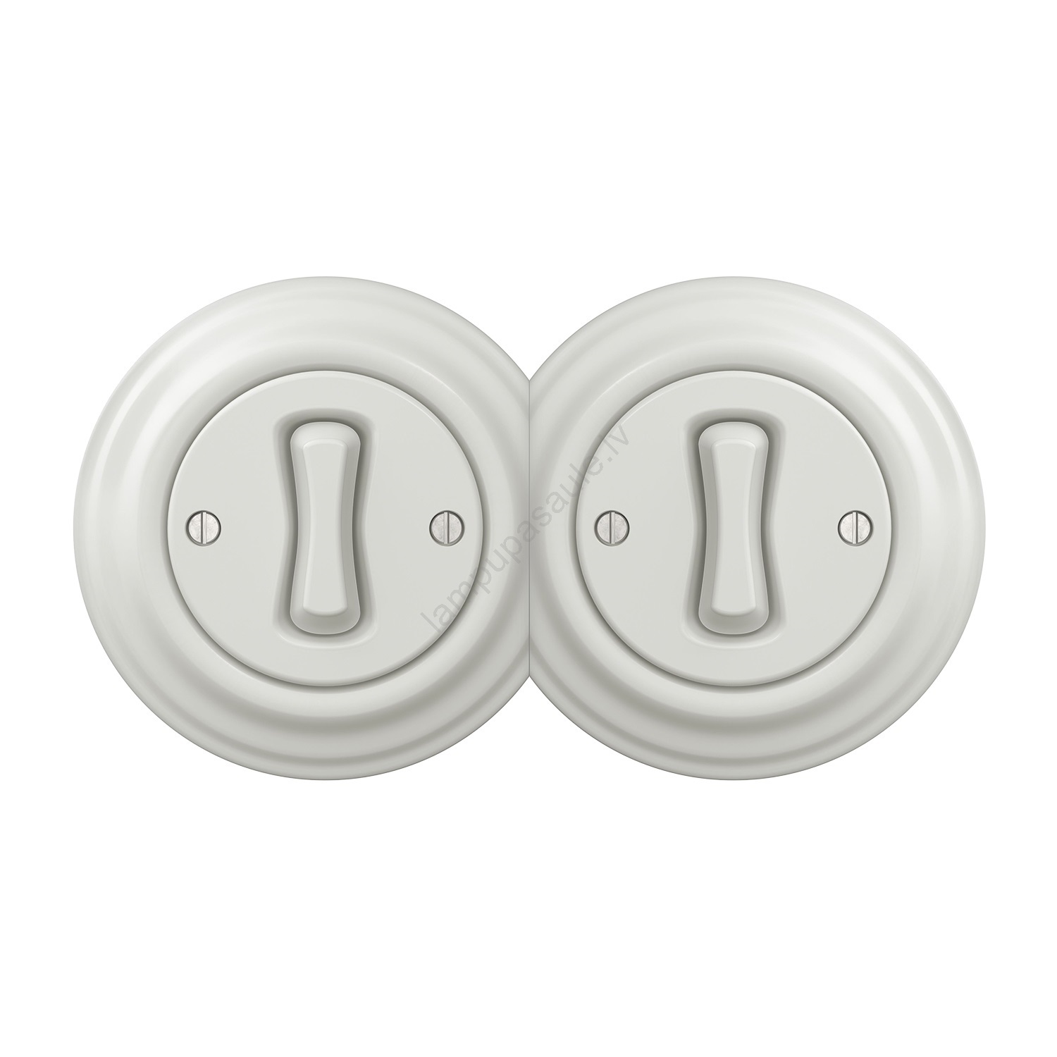Kliklap - dubultais retro vienpolu slēdzis ar rāmi Nr. 1, balts | Lampupasaule