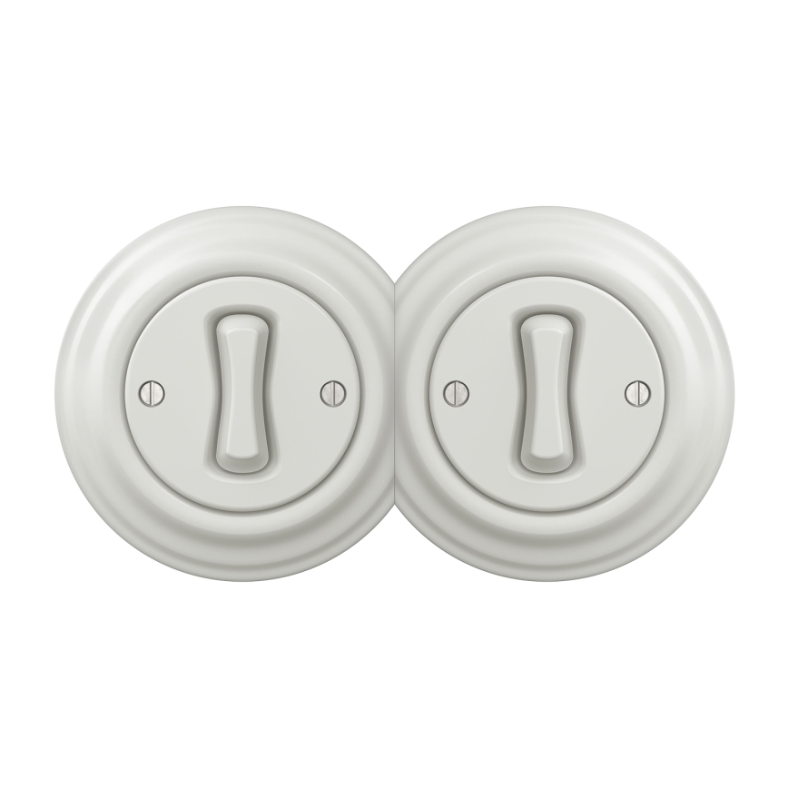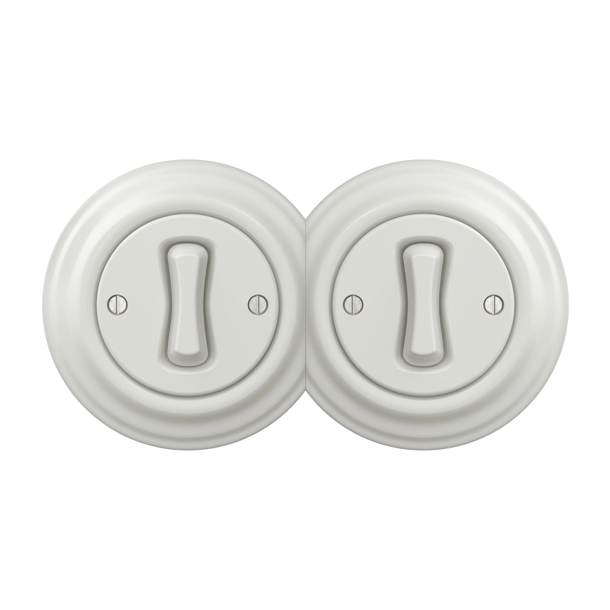 Kliklap - Dubultais retro vienpolu slēdzis ar rāmi Nr. 1, keramikas baltā krāsā