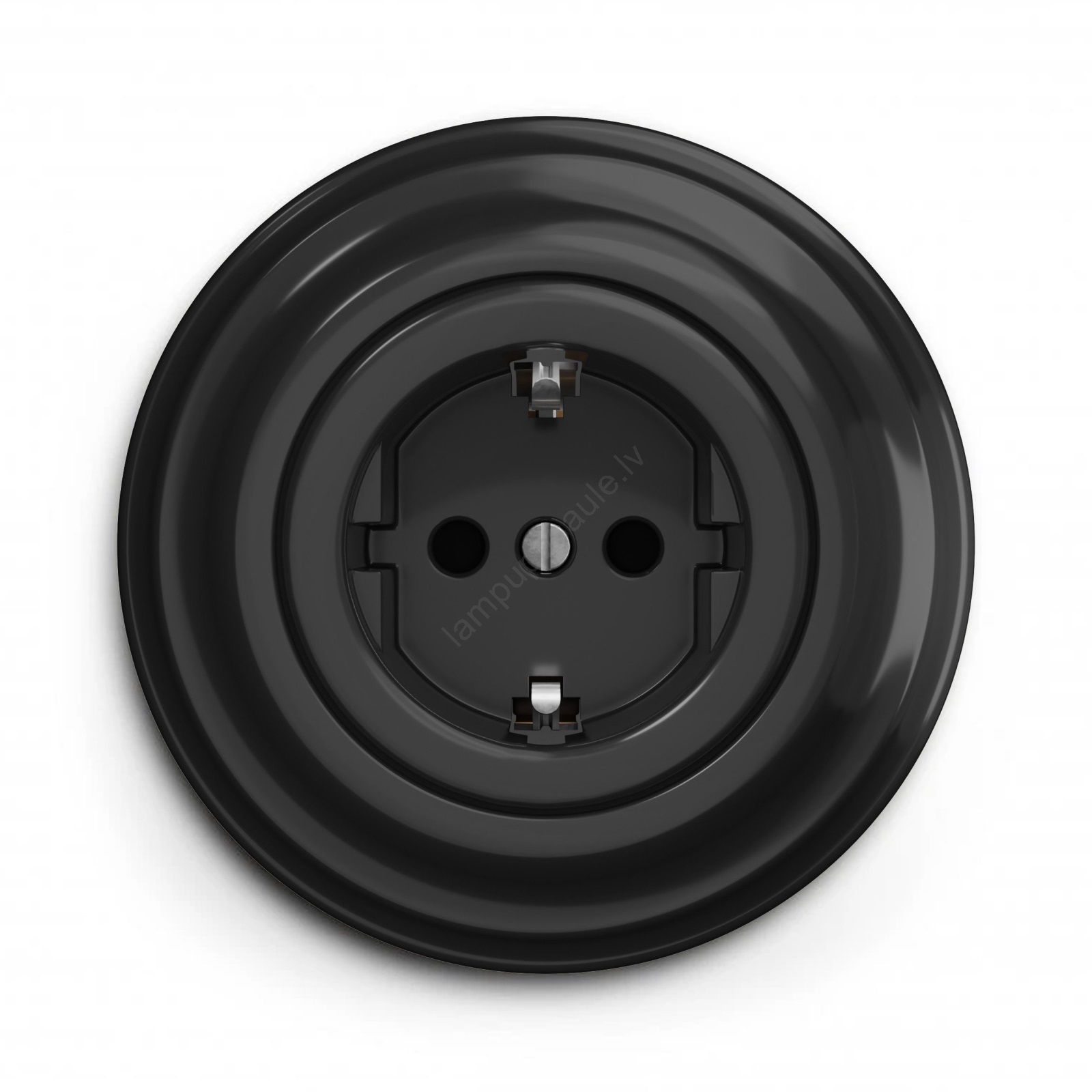 Kliklap - Retro mājas kontaktligzda ar SCHUKO rāmīti 230V/16A, melna | Lampupasaule