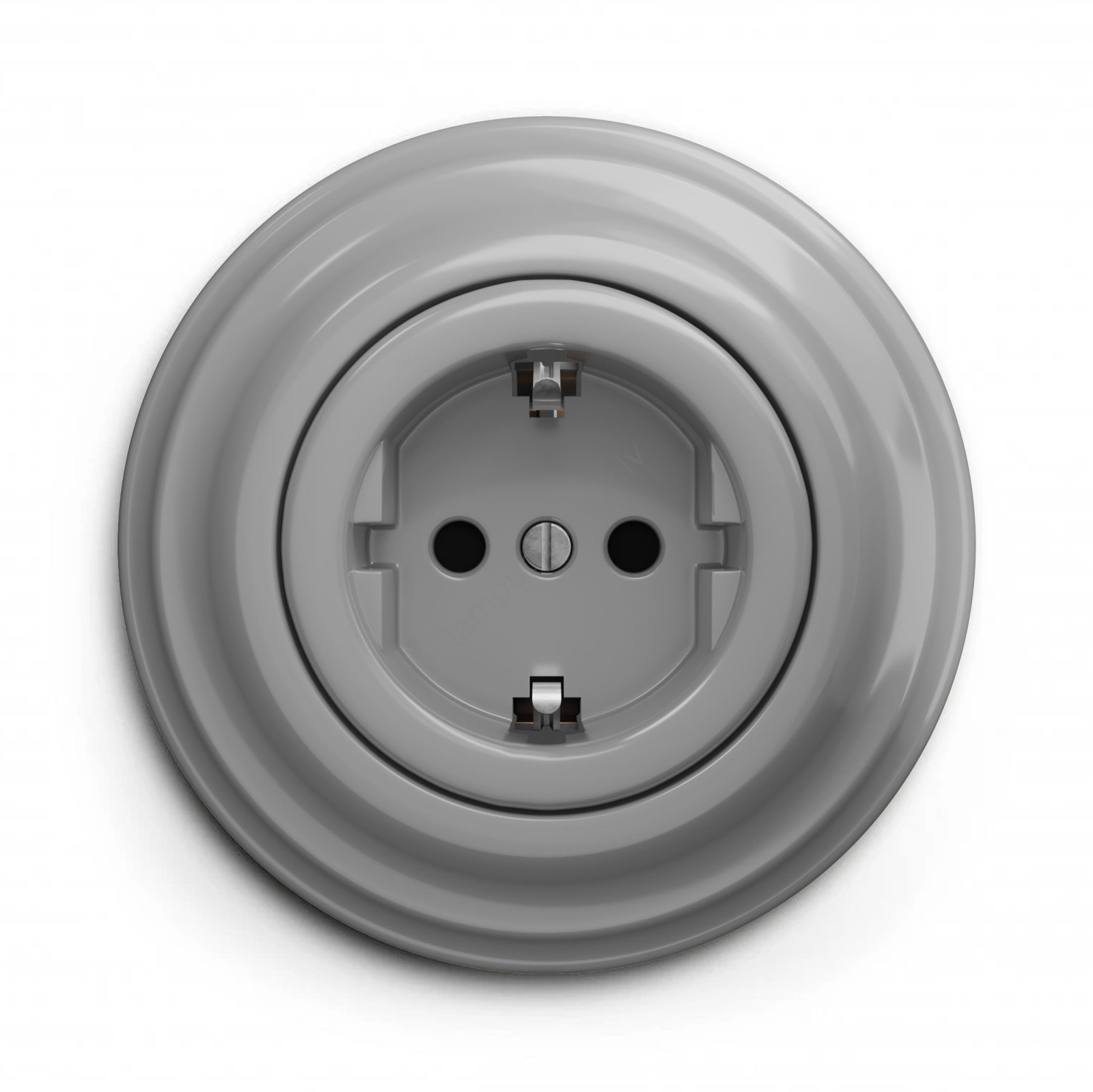 Kliklap - Retro mājas kontaktligzda ar rāmi SCHUKO 230V/16A, pelēka | Lampupasaule