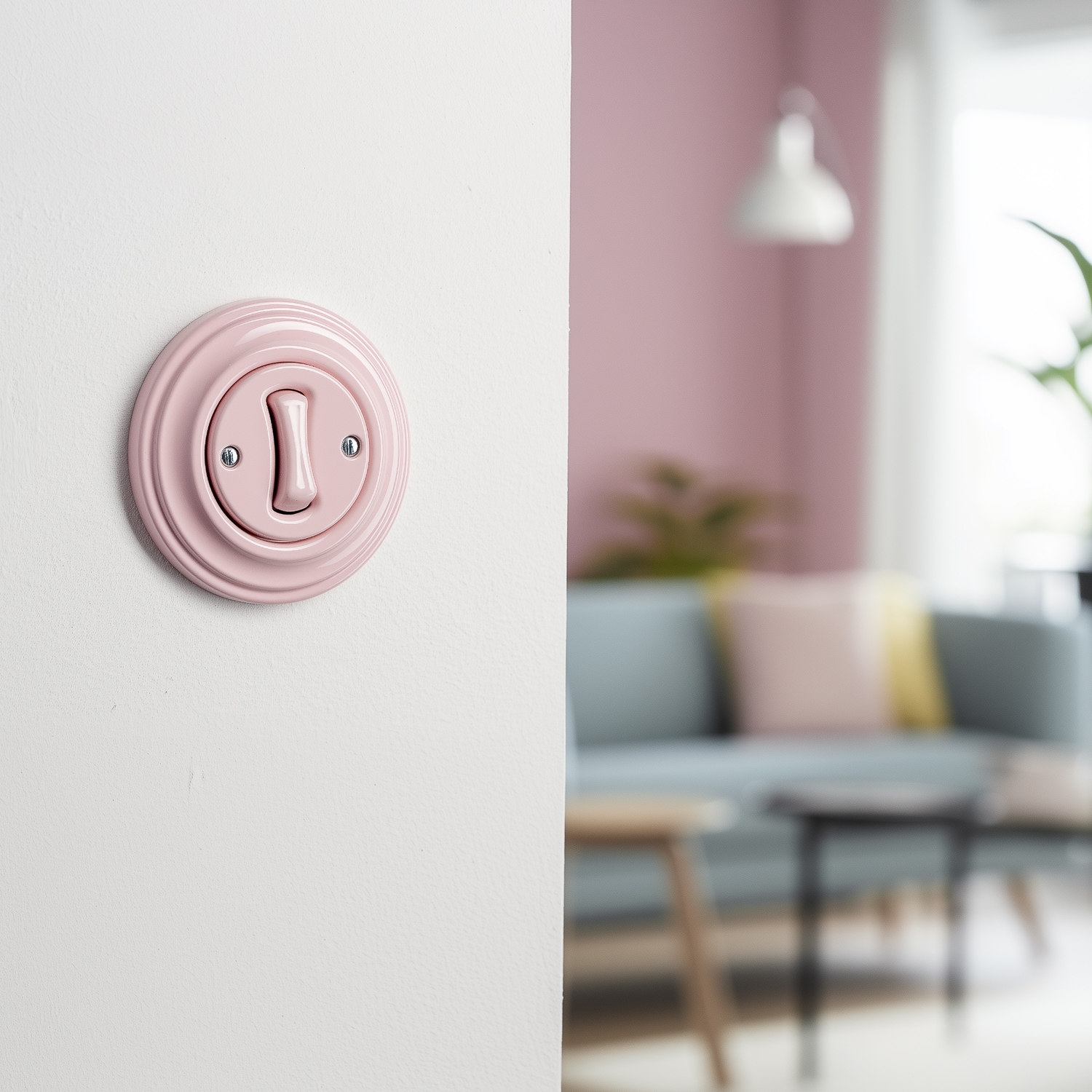 • Kliklap - Retro vienpolu slēdzis ar rāmīti Nr. 1 putekļrozā