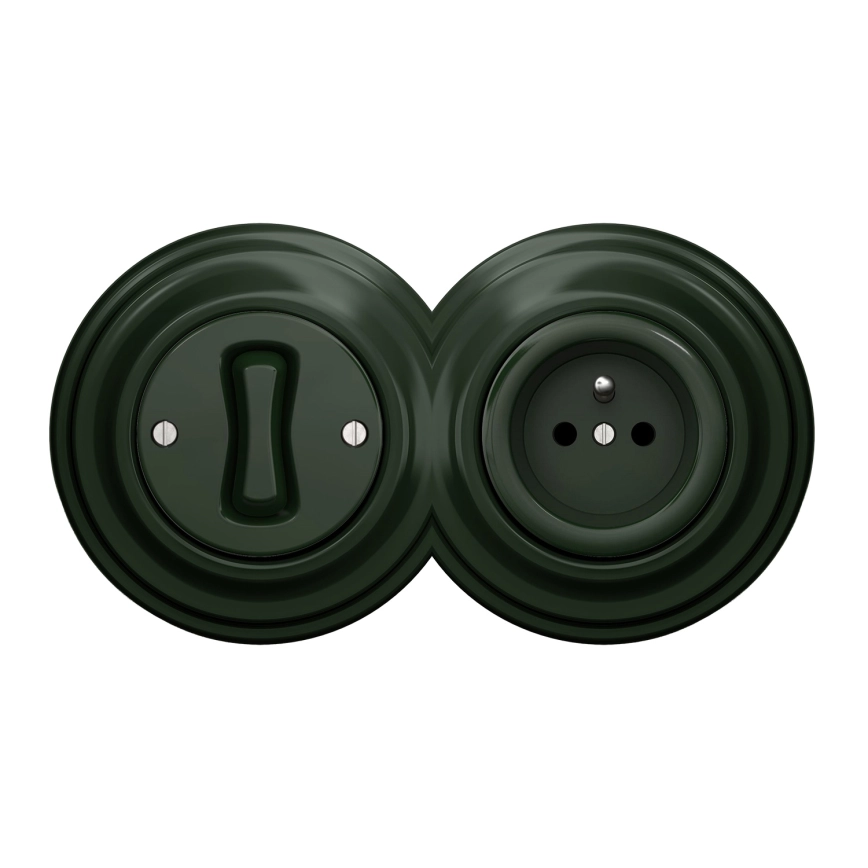 Kliklap - Retro vienpolu slēdzis Nr. 1 un 230 V kontaktligzda ar rāmi, zaļa | Lampupasaule