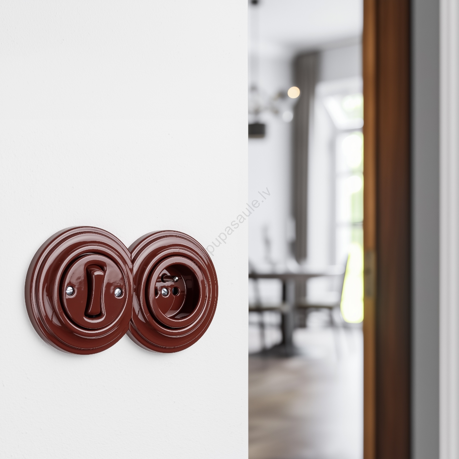 • Kliklap - Retro vienpolu slēdzis Nr. 1 un 230 V kontaktligzda ar keramisku balto rāmi