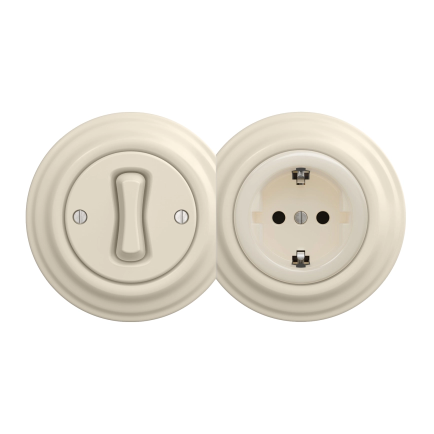 Kliklap - retro vienpolu slēdzis Nr. 1 un SCHUKO kontaktligzda 230 V ar bēšu rāmīti | Lampupasaule