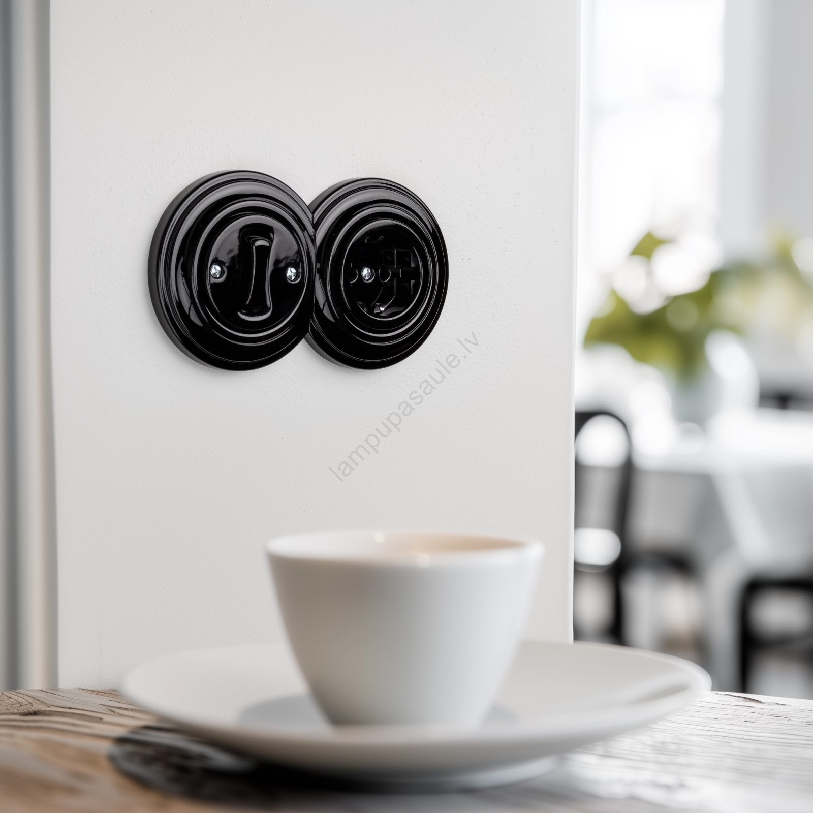 • Kliklap - Retro vienpolu slēdzis Nr. 1 un SCHUKO kontaktligzda 230 V ar rāmīti, melna