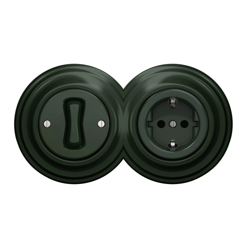 Kliklap - Retro vienpolu slēdzis Nr. 1 un SCHUKO 230V kontaktligzda ar rāmi, zaļa