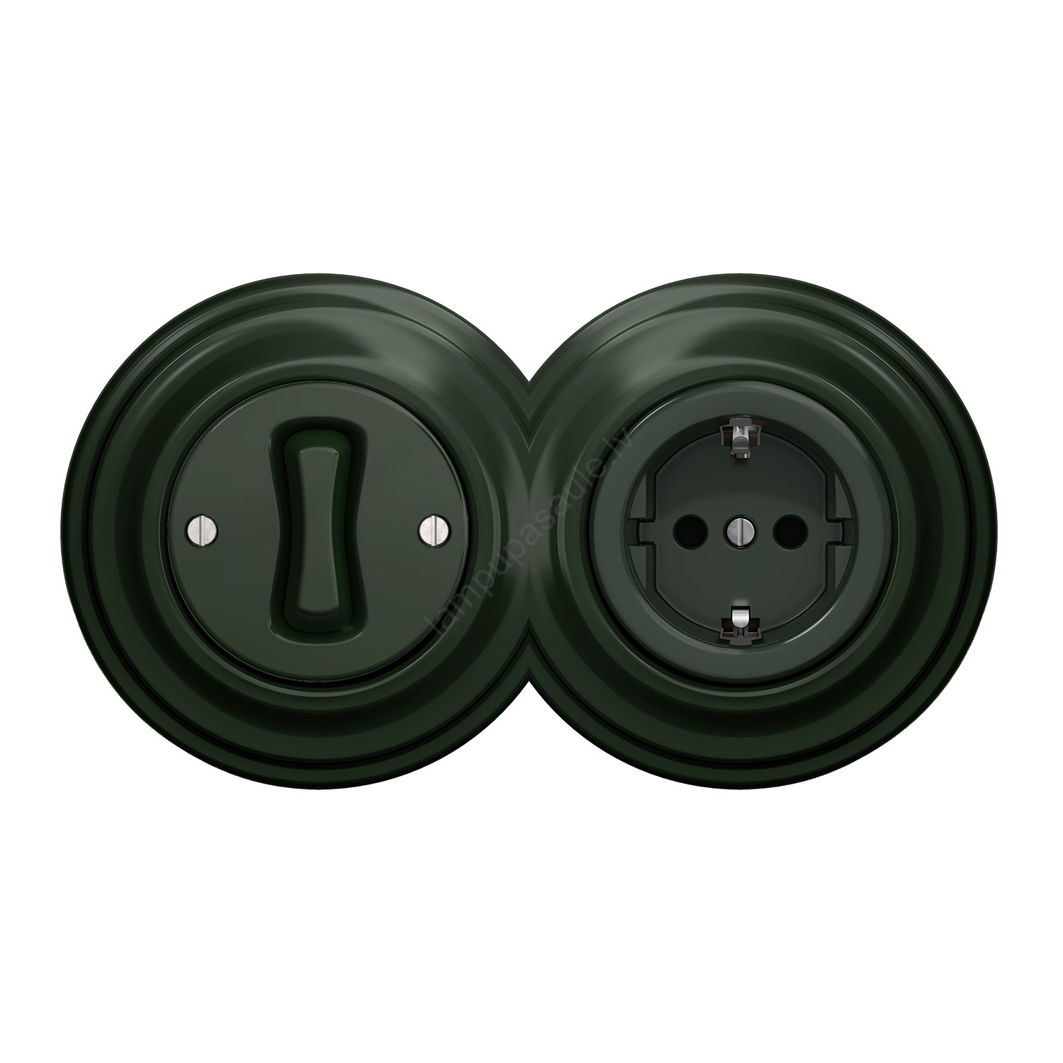 Kliklap - Retro vienpolu slēdzis Nr. 1 un SCHUKO 230V kontaktligzda ar rāmi, zaļa | Lampupasaule