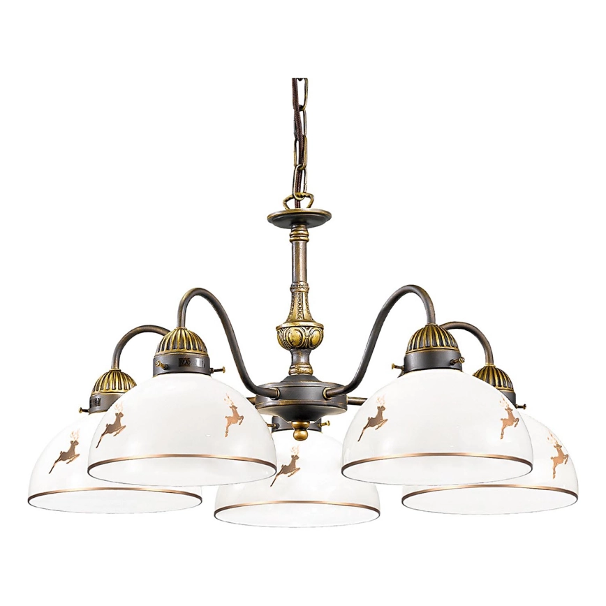 Kolarz 731.85.150 - lustra uz ķēdes NONNA 5xE27/75W/230V, ar briežu motīvu, rožu zelts