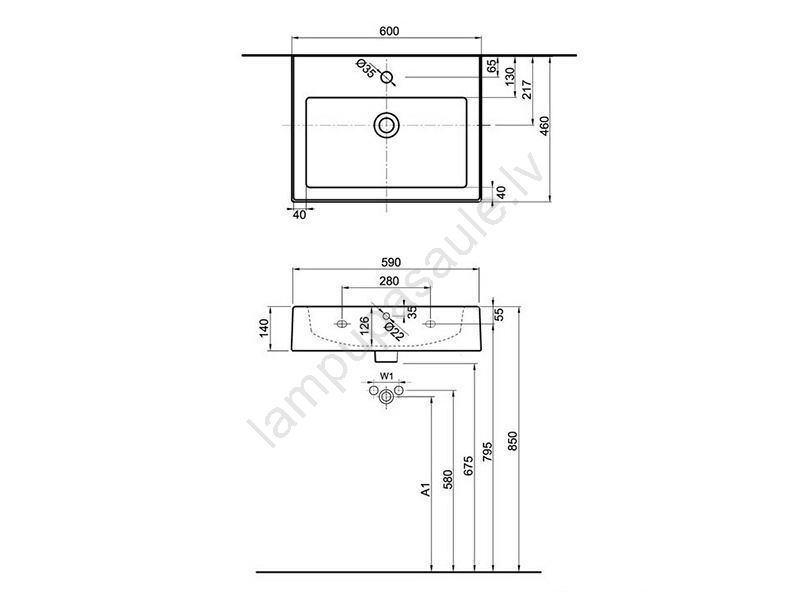 Kolo L51160000 - Sienas piestiprināmā izlietne Twins 60x46 cm keramika/balta | Lampupasaule