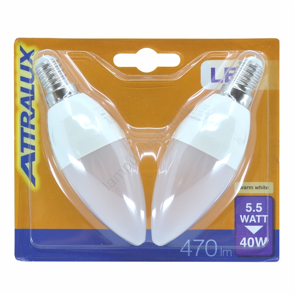 KOMPLEKTS 2x LED spudze E14/5,5W/230V 2700K- Attralux Augstas kvalitātes dizains nodrošinās perfektu jūsu interjera apgaismojumu. E14 kategorija ir veltīta spuldzēm ar tādu pašu cokolu. Mūsu e-veikalā varat izvēlēties spuldzes ar tradicionālo kvēldiegu vai modernās LED spuldzes, kas ir energoefektīvākas un ar ilgāku darbības laiku.