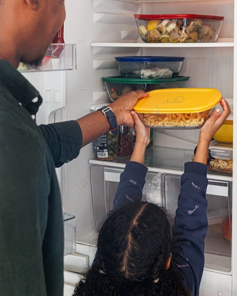 • Taisnstūrveida forma ļauj efektīvi izmantot vietu krāsnī un ledusskapī, savukārt vāks nodrošina ēdiena ilgāku svaigumu.