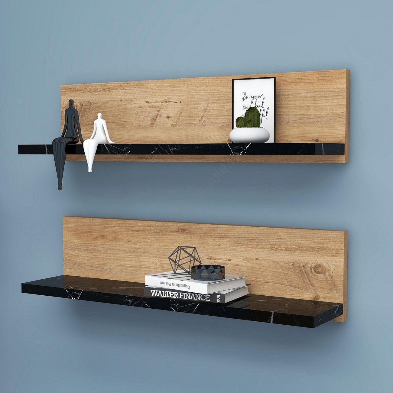 Komplekts 2x SHELFIE plaukti — priede/melna