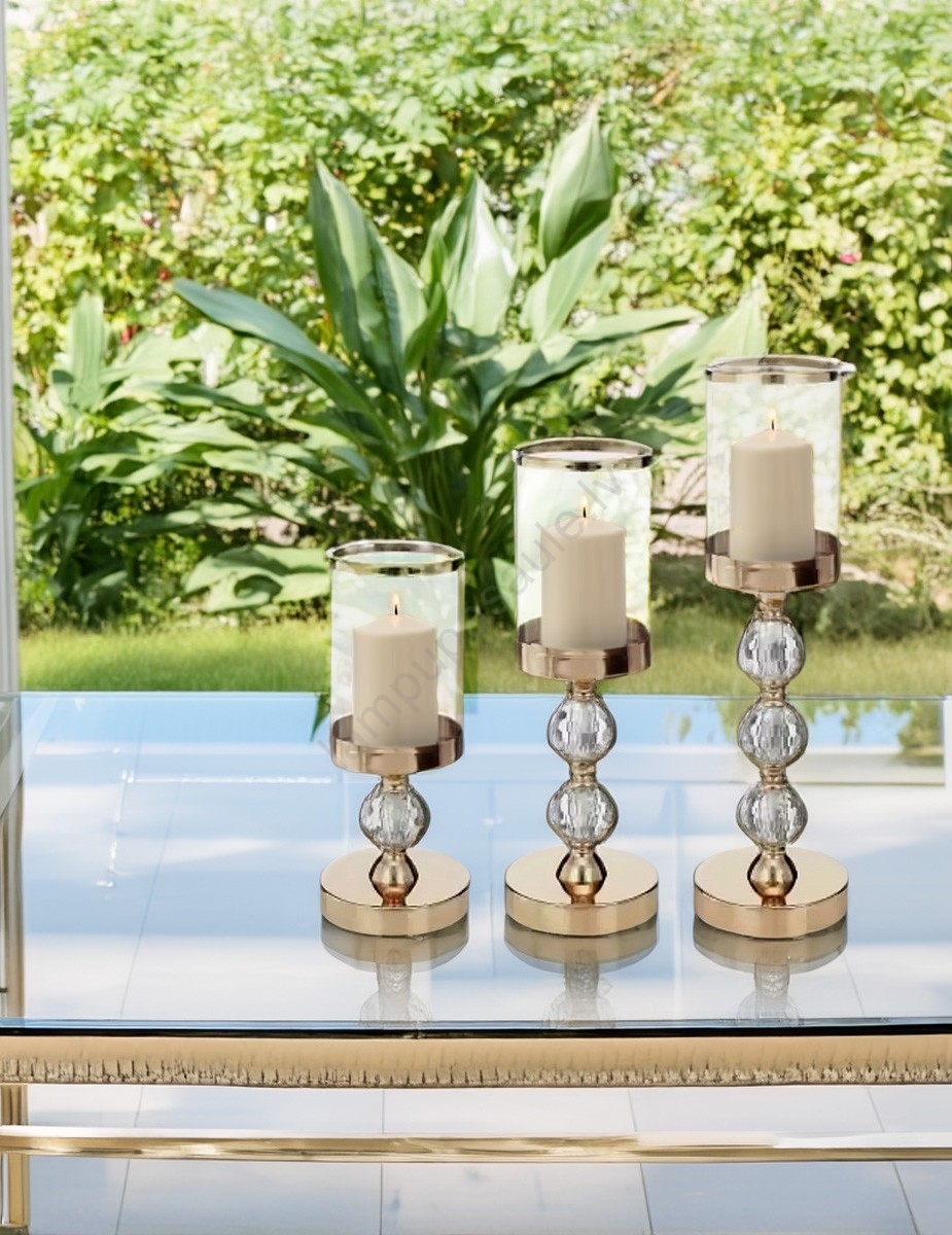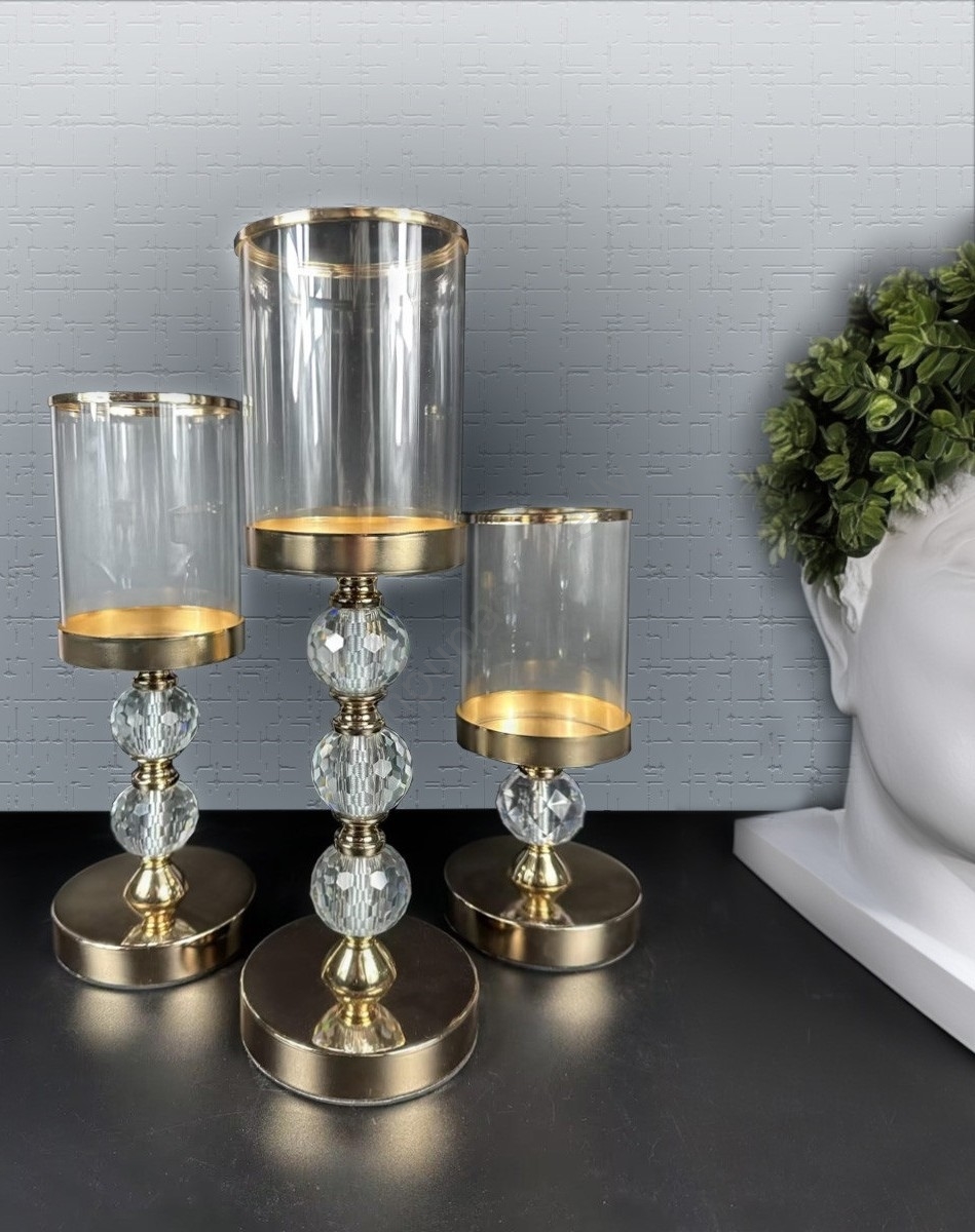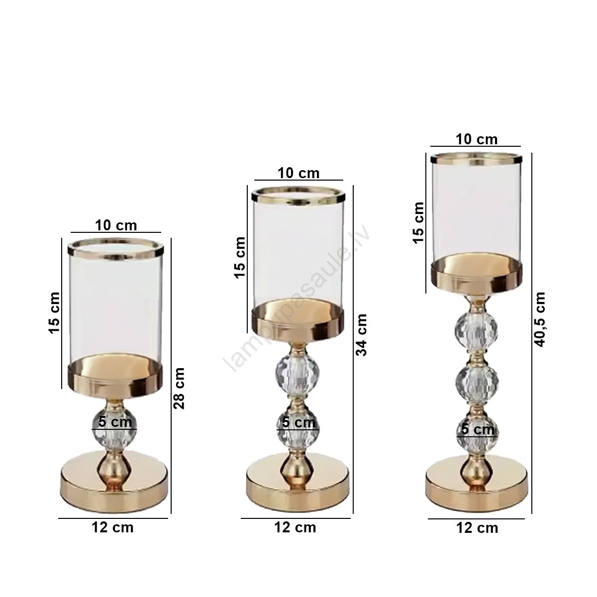 Komplekts — 3 zelta svečturi | Lampupasaule