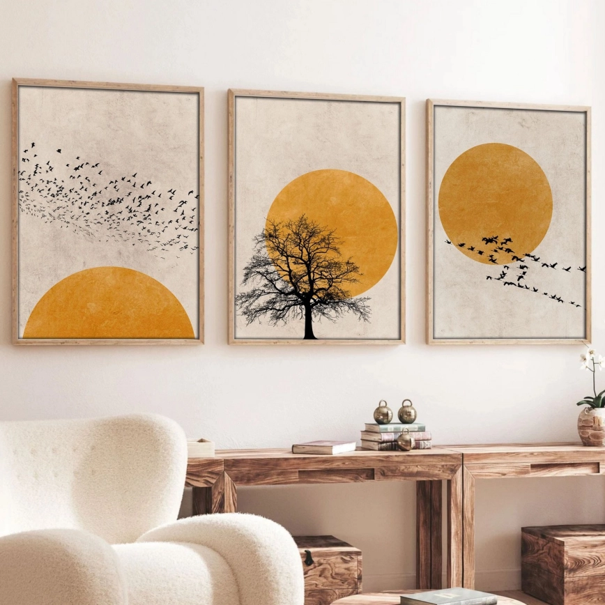 Komplekts 3x attēli fotorāmjos 50x70 cm, bēšs/oranžs