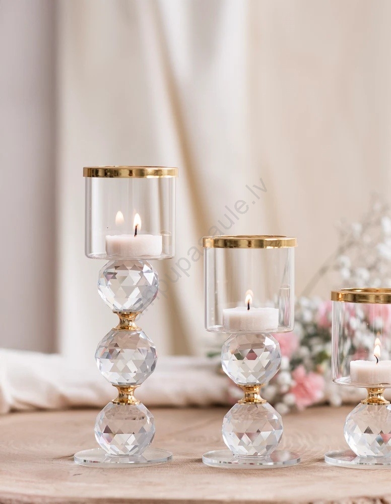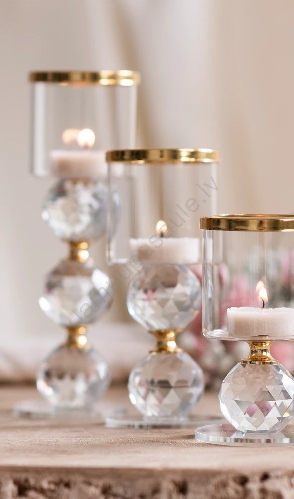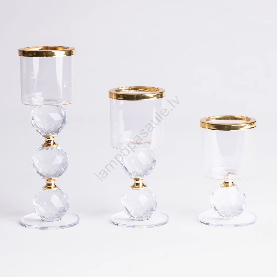 Komplekts 3x svečturi, zeltaini/caurspīdīgi | Lampupasaule