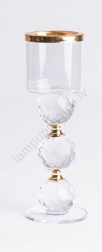 Komplekts 3x svečturi, zeltaini/caurspīdīgi