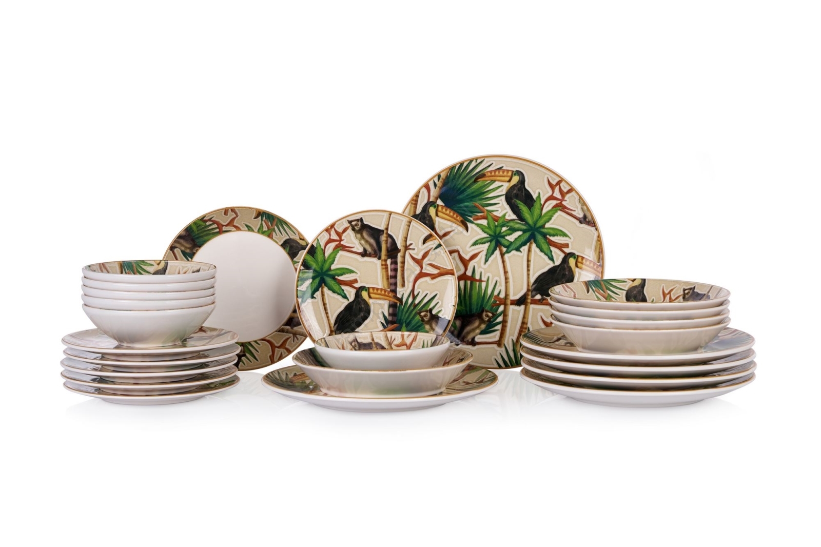 • Elegants galda trauku komplekts, kas lieliski piemērots gan ikdienas ēdienreizēm, gan svinīgiem brīžiem.
