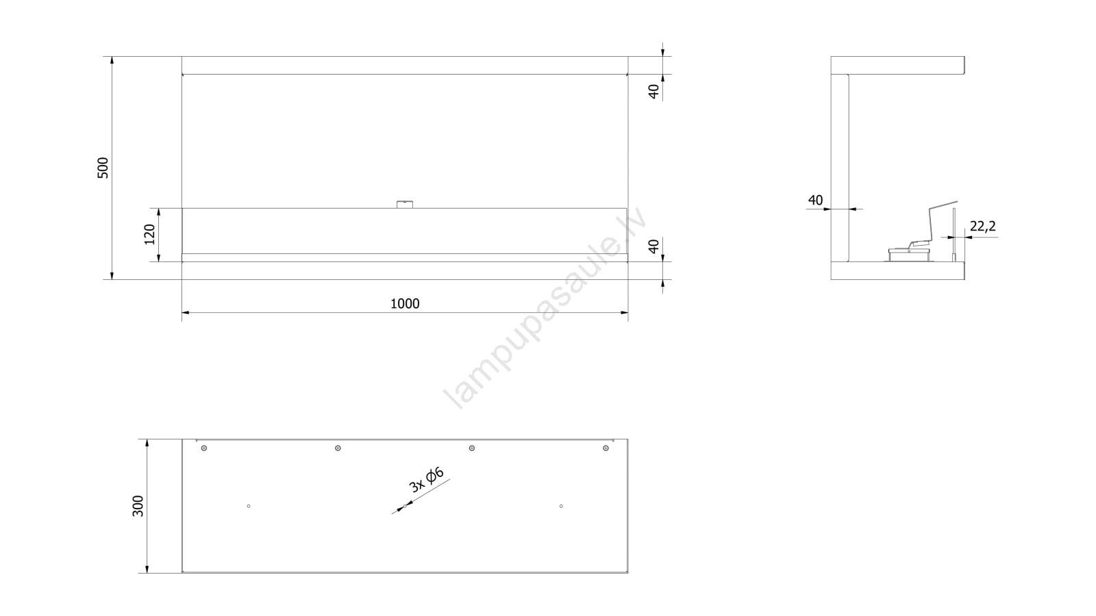 • Degļa izmēri: 5,4 x 89,3 x 9,4 cm.