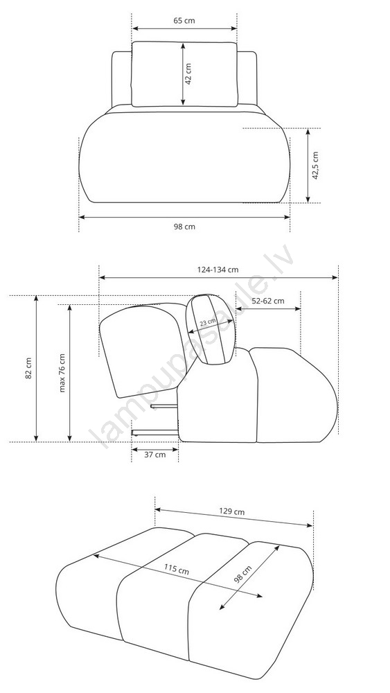 • Sēdekļa dziļums 52-62 cm nodrošina pietiekami daudz vietas ērtai un ergonomiskai sēdēšanai.