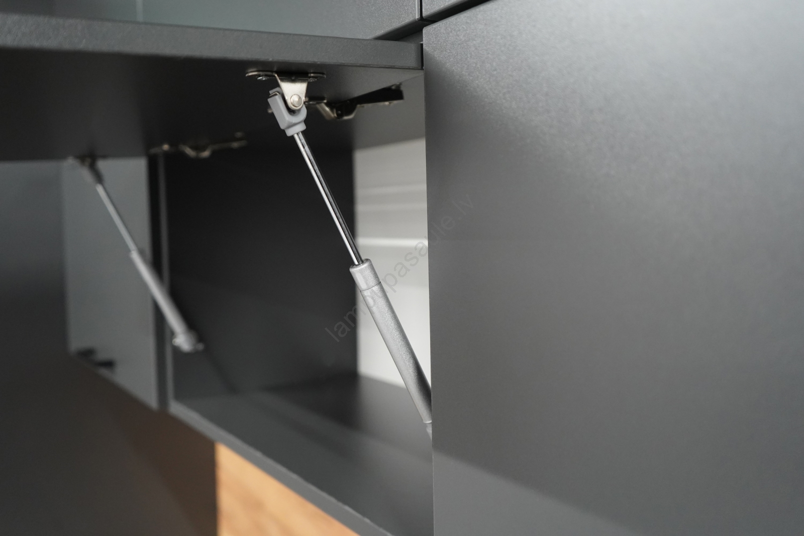 • Augšējie skapīši aprīkoti ar gāzes atsperēm, atvilktnēs ir iebūvētas kvalitatīvas slēgtas metāla sliedes.