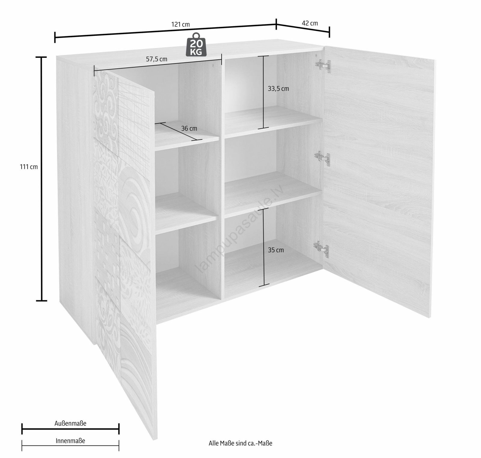 • Kaste nr. 2: 8,2 x 118 x 64 cm (30 kg).